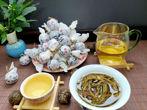 【茶品名称】2020年云南名山 昔归龙珠 古树纯料500克迷你小青沱 生茶