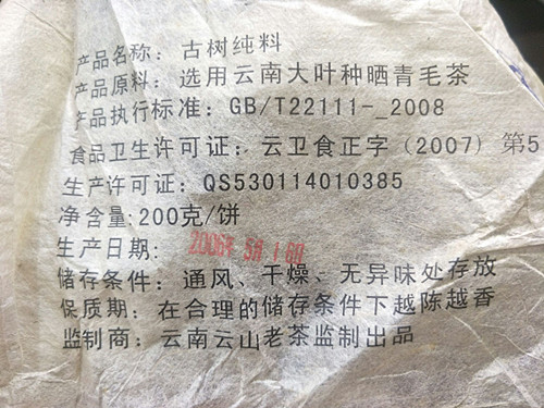 【配 料 表】布朗山乔木古树茶