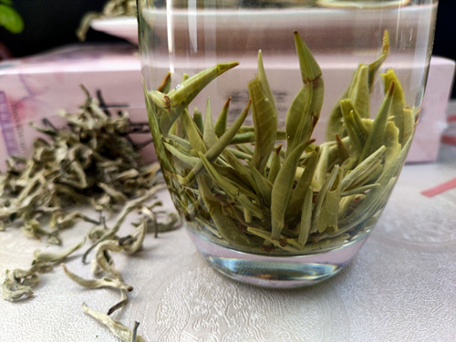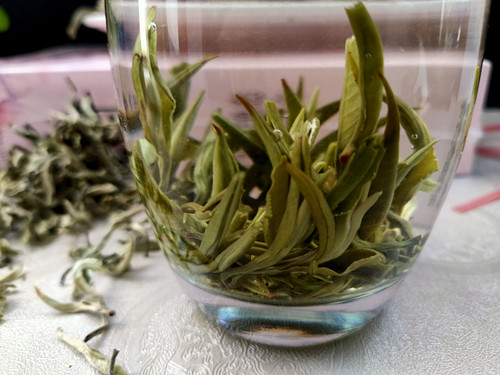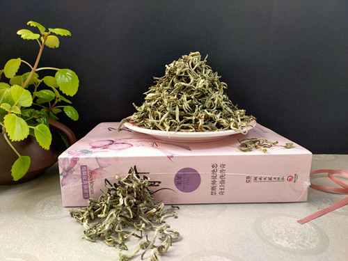 【商品介绍】原料精选勐海大渡岗地区大叶种特级单芽高山雪龙春尖白毫原料,本茶品全选高山芽尖白毫,外形白毫透绿。冲泡后茶汤淡绿清亮,香气怡人,鲜爽甘甜,入口顺滑,口感饱满,滋味醇浓,回味生津持久,饮后唇齿留香,口气清新自然!适合日常品饮或是招待亲朋好友。