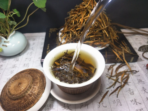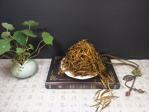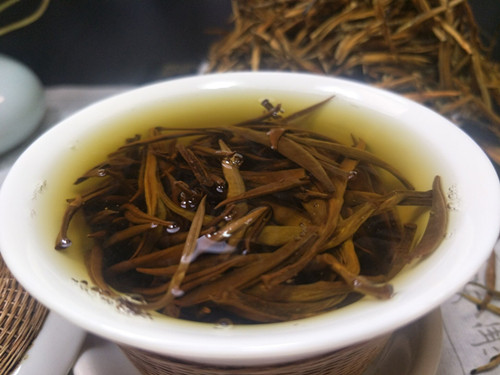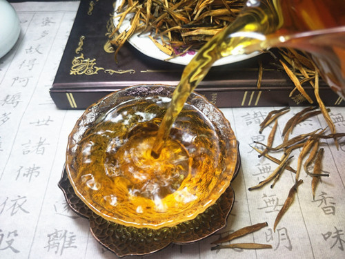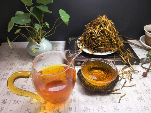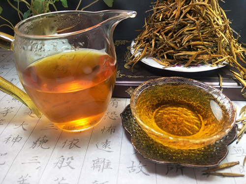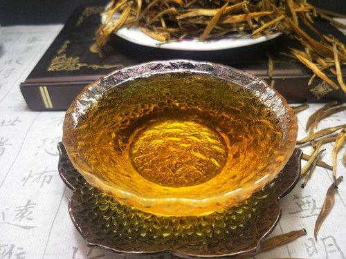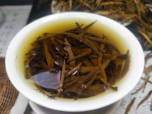 【产品特点】此茶品精选云南凤庆高海拔茶区的优良早春古树茶树品种,采用萎凋、揉捻、发酵、理条、烘焙等精湛的工艺精制而成。干茶为全金芽叶,苗锋秀丽紧直,金毫满布,香气馥郁,汤色通透如琥珀,蜜香萦绕,滋味醇爽。叶底柔嫩明亮,芽叶完整。